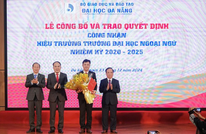 Tại buổi Lễ, PGS.TS. Nguyễn Ngọc Vũ – Thành ủy viên, Giám đốc Đại học Đà Nẵng đã trao Quyết định số 5238/QĐ-ĐHĐN ngày 18/12/2024 công nhận PGS.TS. Nguyễn Văn Long – Phó Hiệu trưởng Trường Đại học Ngoại ngữ giữ chức vụ Hiệu trưởng Trường Đại học Ngoại ngữ, nhiệm kỳ theo nhiệm kỳ của Hội đồng trường Trường Đại học Ngoại ngữ (2020-2025)
